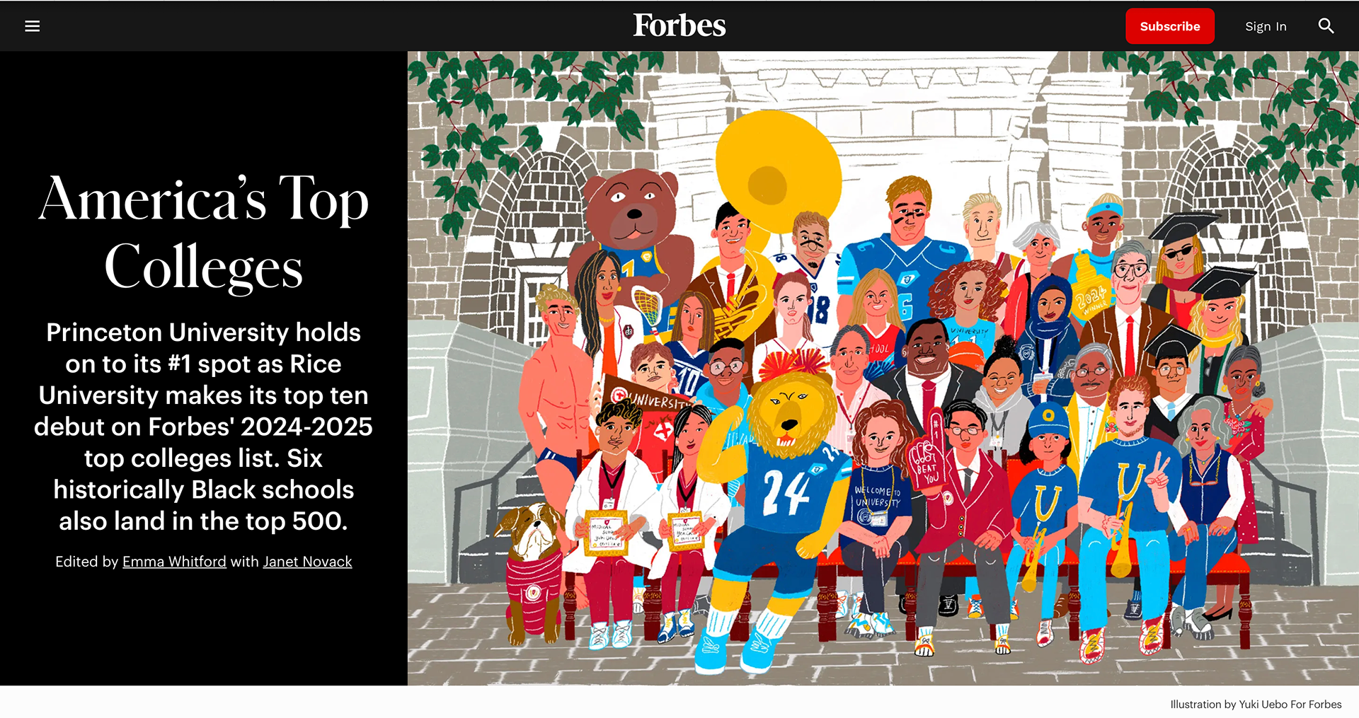 アメリカ版ForbesのAmerica's Top Collegesの記事にイラストを描きました。