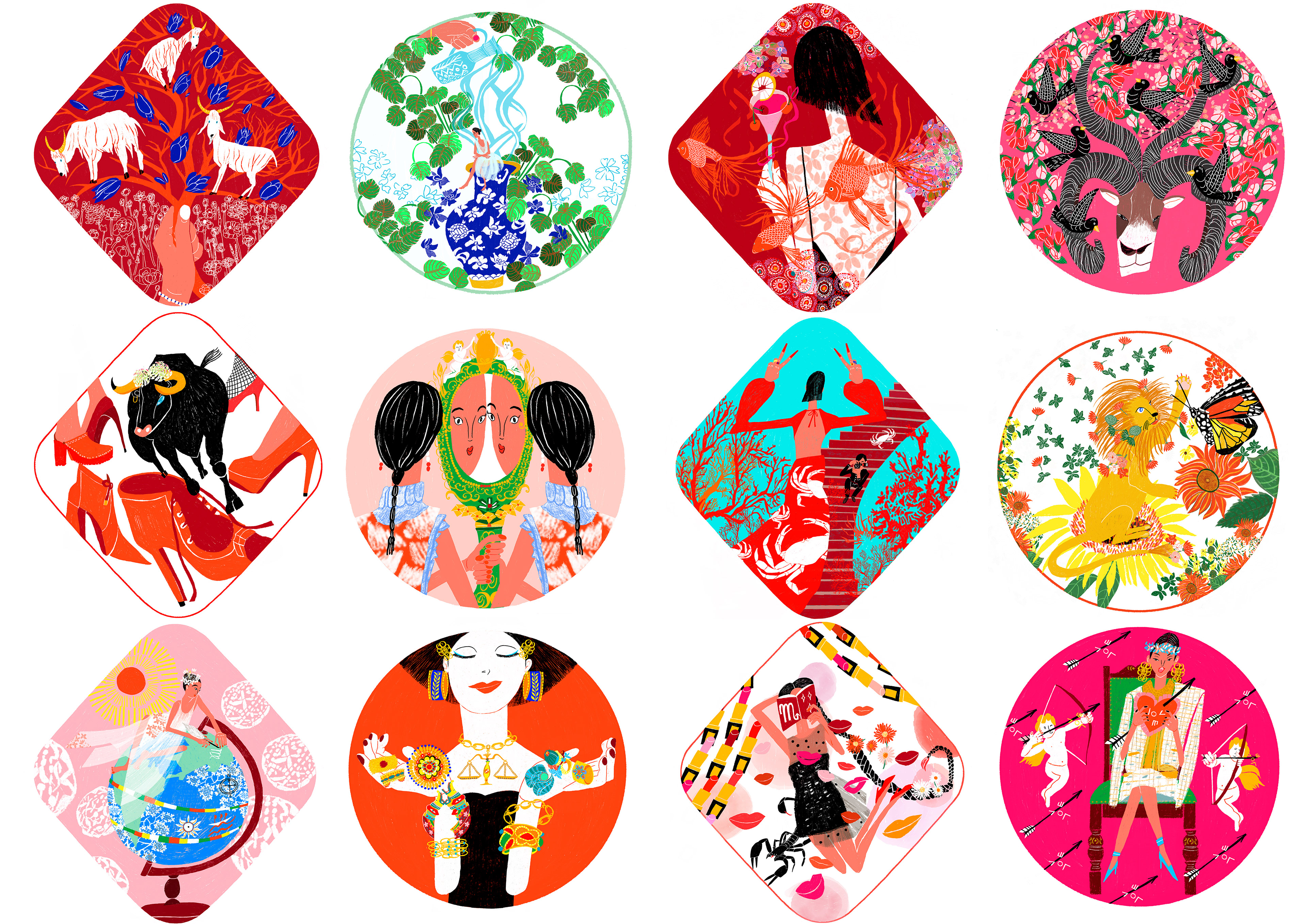 I’ve been illustrating the horoscopes for all twelve zodiac signs for ELLE JAPAN for a full year (since July 2025).