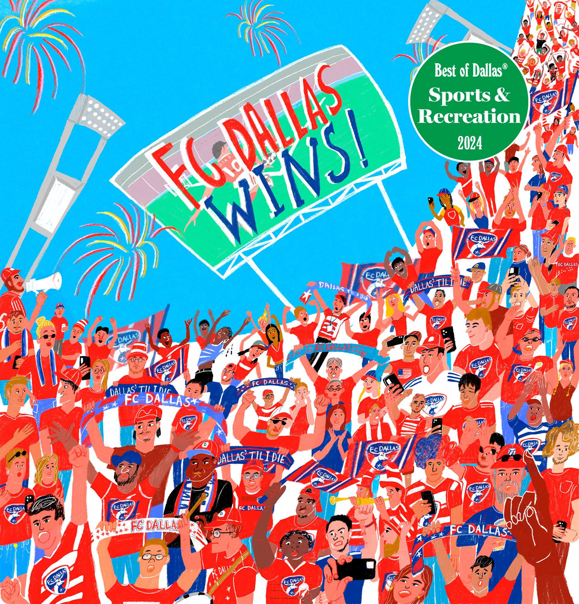 I illustrated the FC Dallas fans for 'Best of Dallas' for the American regional magazine 'Dallas Observer'.