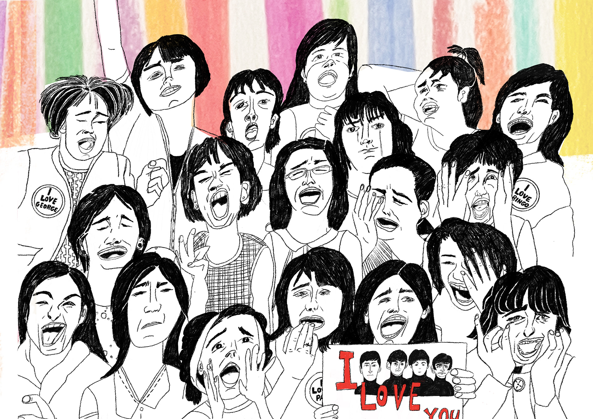 Idols have always attracted many fans around the world. I illustrated girls who were fans of the Beatles in the 1960s.