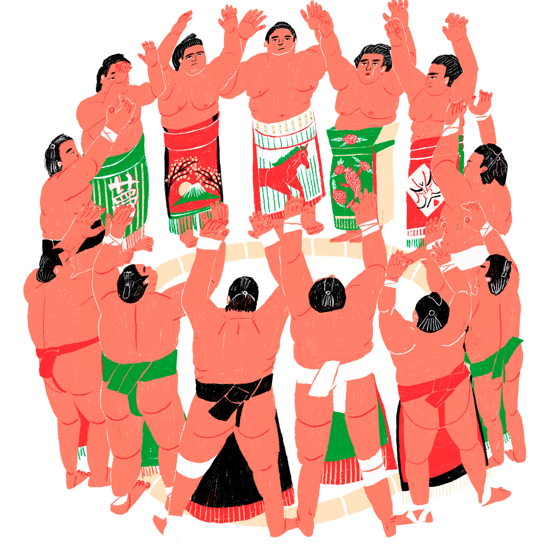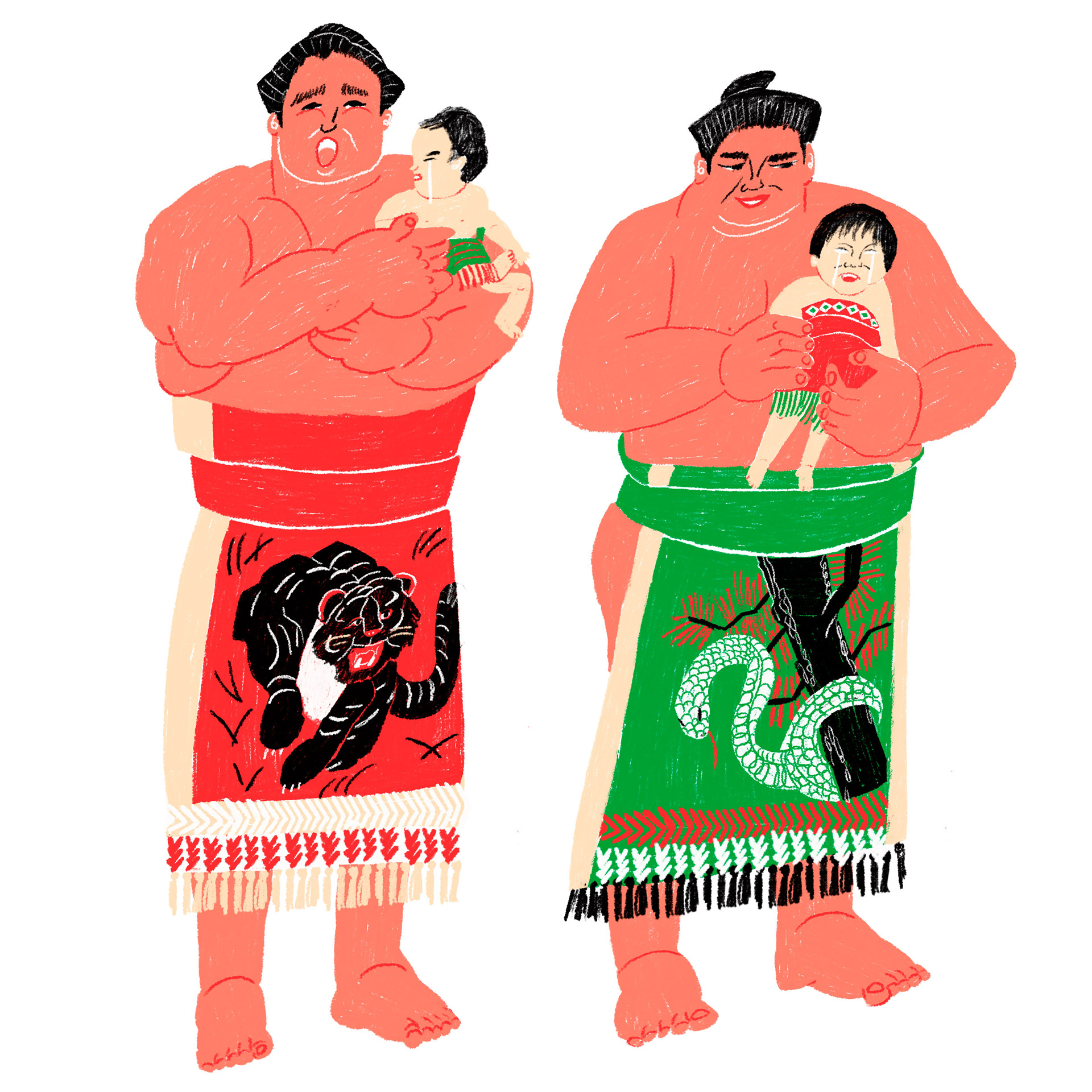 I illustrated various scenes of SUMO wrestlers for the design of aloha shirts by the fashion brand Eanbe