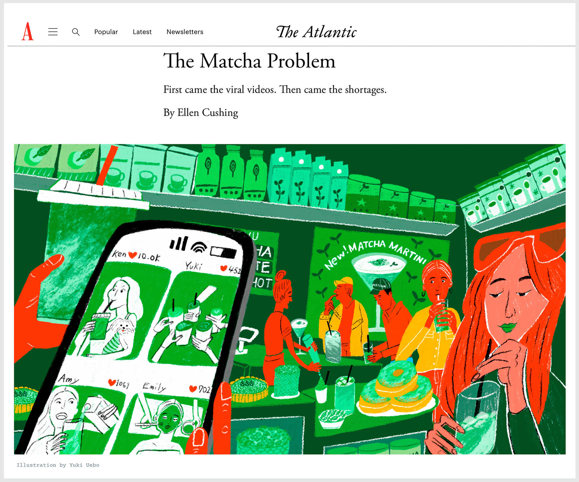 I illustrated the article 'The Matcha Problem' for the magazine The Atlantic.